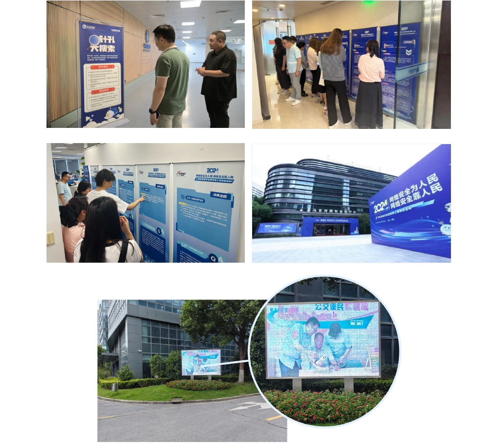 依托云工會平臺開展以網絡安全宣傳為主題的線上學習活動,圍繞《網絡安全法》《數據安全法》等5個主題開展知識競答,激發(fā)員工學習網絡安全知識的積極性,檢驗提升員工的網絡安全防護水平。線下設置網絡安全宣傳展板、海報、LED屏幕、宣傳手冊,邀請專家講課、組織培訓、參觀展覽,設計模擬場景查找針孔探頭,提升員工信息安全意識,筑牢個人信息安全之堤,保護企業(yè)信息安全。